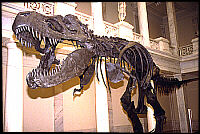 In addition to escaping from the hall, the new T. rex has broken away from tradition. This replica, one of the most complete skeletons ever found, has shattered scientific convention by assuming a revolutionary pose. Unlike the Museum's other rex specimen, which looms upright over Dinosaur Hall, this one is structured in a more life-like position, as if confronting prey or another marauding Tyrannosaur. Long a favorite of museum visitors, the Dinosaur Hall rex is depicted at rest in a vertical position rather than in action. Tempers are sure to flare as the rexes vie for dinophiles' attention on their opposing turfs. The Tyrant Kings of the Lizards last toured the Earth 65 to 67 million years ago during the late Cretaceous period. Their absence from the public eye has been attributed to everything from asteroids to poisonous gas. Like most legends of rock, rumors of a reunion dog the terrible twosome. The most likely forum will be the forthcoming renovated Dinosaur Hall at Carnegie Museum of Natural History. The Tyrannosauri were unavailable for comment. |