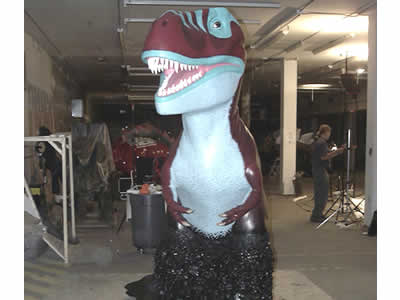 The original concept was to portray the T-rex in a state of metamorphosis. The dinosaur represents the Pittsburgh area morphing from a fossil fuel-based economy into a new era as a fierce competitor. The lower portion of the dinosaur is covered in coal and stands in a reflective pool of black paint, representing oil.