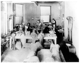 work on dinosaur fossils in the laboratory, 1899. CMNH Section